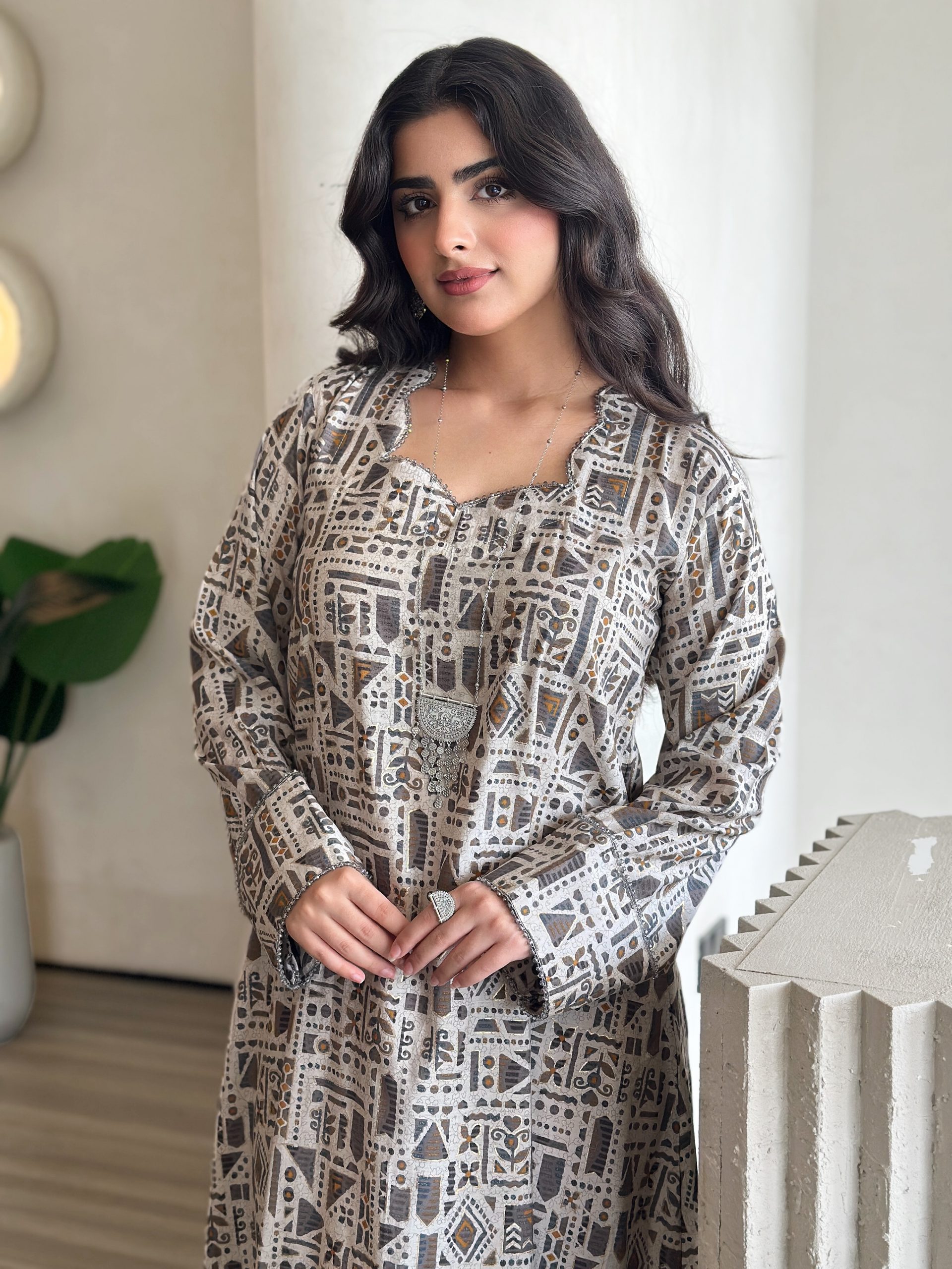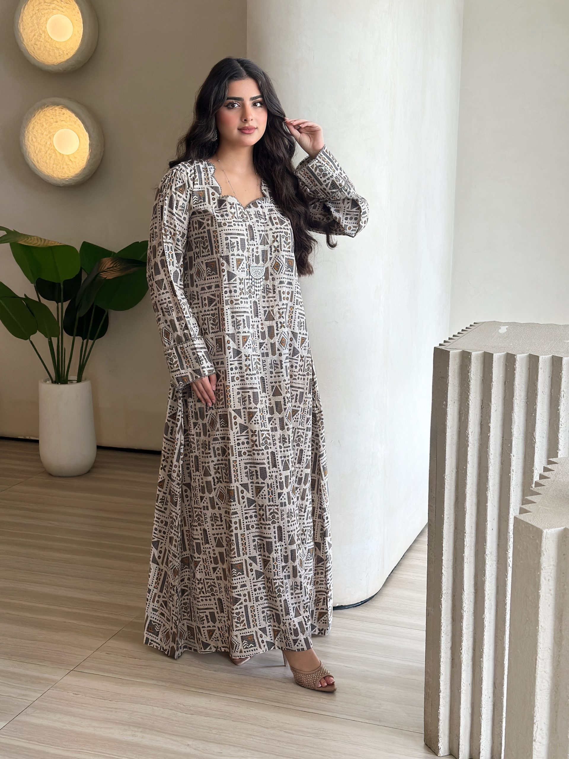 فستان “نوفاستايل” يجمع بين الأناقة والتراث بتصميم عصري يعكس الذوق الرفيع. مزين بنقوش هندسية راقية مستوحاة من الثقافة، هذا الفستان طويل الأكمام مصنوع من أجود المواد ليمنحكِ إحساسًا بالراحة والتميز. مثالي للمناسبات الرسمية واليومية في الإمارات، حيث يجسد التوازن المثالي بين الجذور التقليدية والأسلوب الحديث.